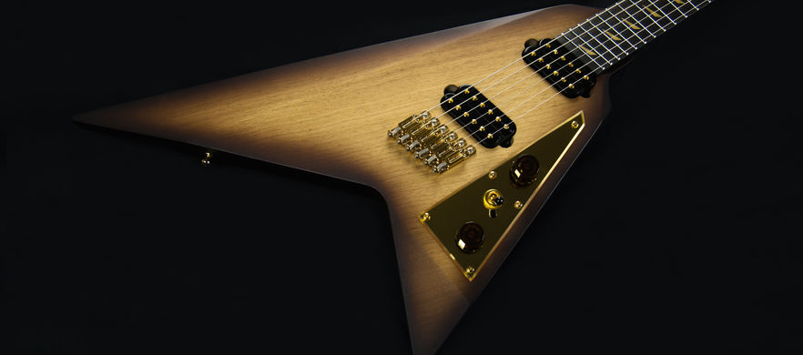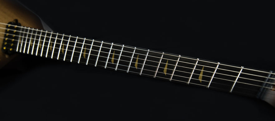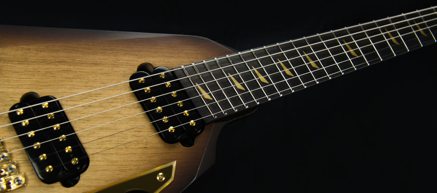 When it comes to lower tunings and high gain distortion we need tonewoods that cut through. The Messiah V body is made of Mahogany. You still have the choice to select a different wood, if you desire a different tone approach The neck is made of Flame Maple or Mahogany and the fretboard can be flame Maple, Rosewood or ebony. The right tonewood combination will give you clear notes with perfect string separation. Perfect for the modern musical styles.